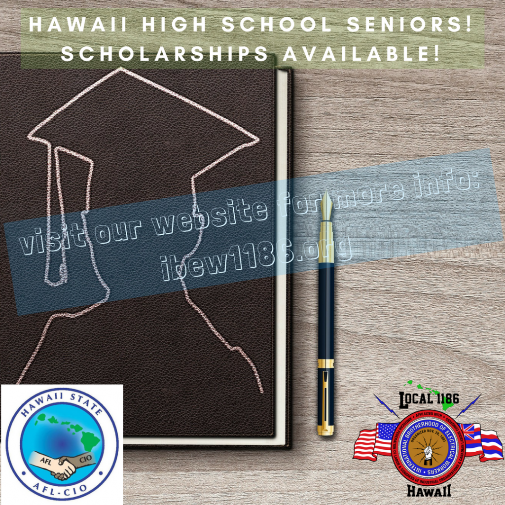 Attention Hawaii high-school seniors! Scholarship money available – and read: You do NOT have to be a family member of a union member! Details below, good luck!