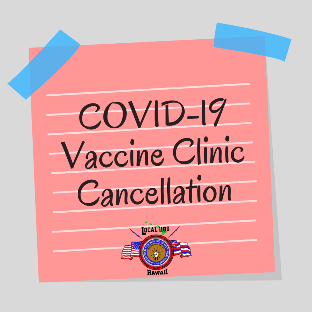 Please see below for a message from Business Manager/Financial Secretary Damien Kim, regarding the cancellation of this Saturday’s vaccination clinic in partnership with the Hawaii Building and Construction Trades Council (HBCTC).